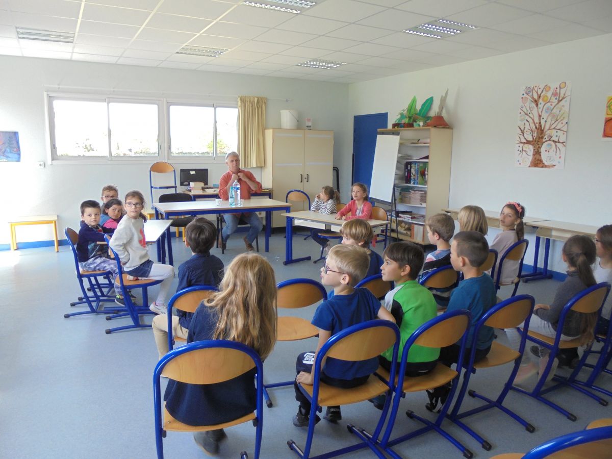 Quelle chance ! Les élèves de cycle 2 ont interviewé Jean-Michel Vinchon, artiste du groupe des Bouskidou. Bien entraînés à la lecture, ils se sont investis dans leur rôle et ont présenté une petite prestation chorale réunissant des chansons de l’artiste.
