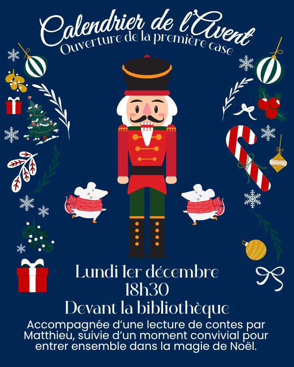 Ouverture de la première case à 18h30, suivie de lectures d’histoires par Matthieu et d’un moment convivial pour partager ensemble la magie de Noël.