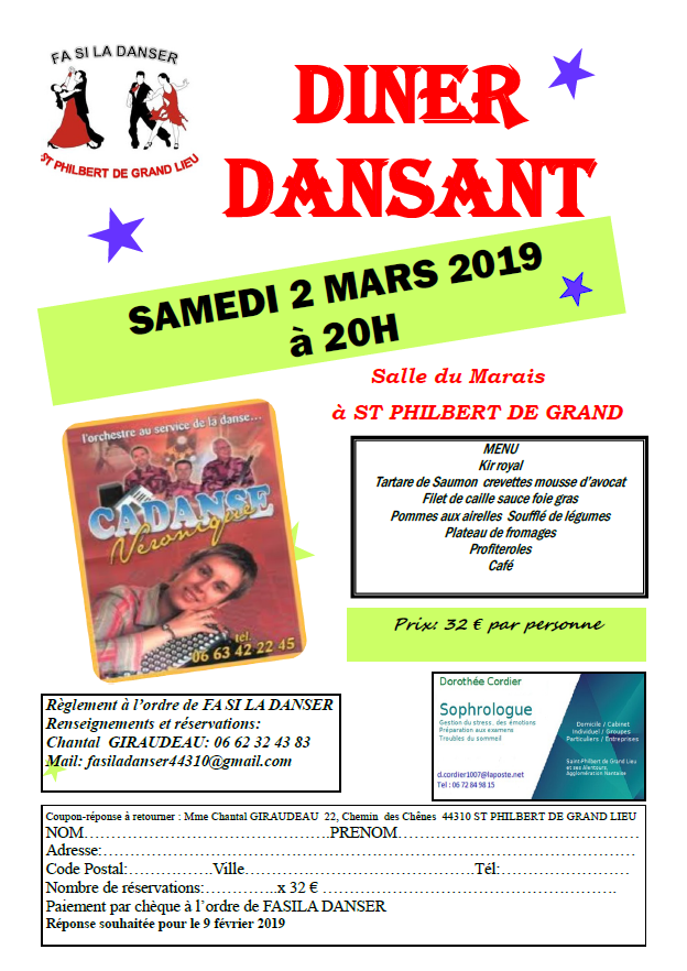 Nous serons heureux de vous accueillir à la salle du Marais de St Philbert de Grand Lieu à 20h.