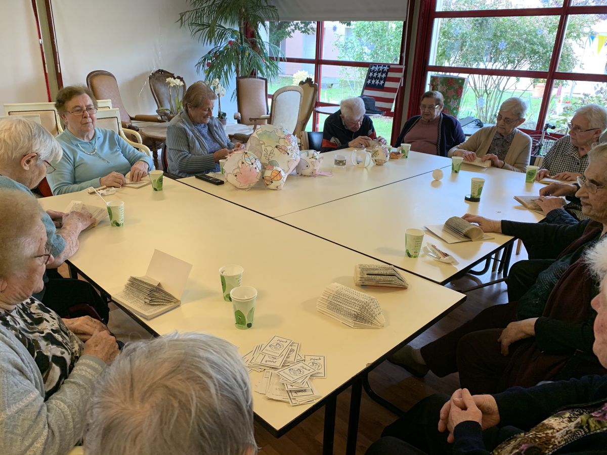 L’animatrice de la bibliothèque de La Limouzinière est intervenue à Ker Maria et nous a fait découvrir le pliage de livres, avec la réalisation de sapins de Noël, de lampions et de joyeux petits hérissons. La concentration était de rigueur, mais elle n’a pas pris la place de la bonne humeur.