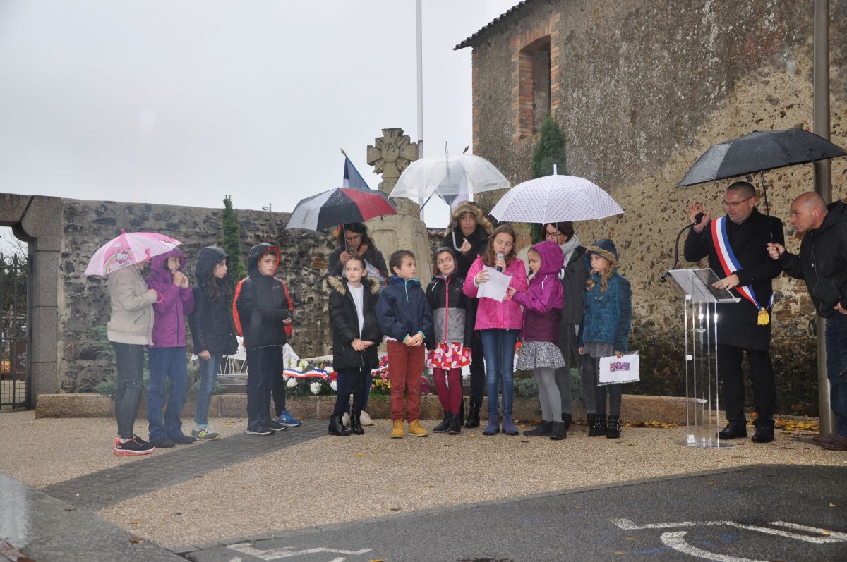 Après une minute de silence, des enfants de l’école Gaston Chaissac, accompagnés de leur enseignante ont présenté « un signe pour la paix » en expliquant à l’assemblée le choix de leur dessin.