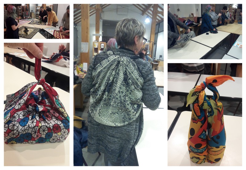 L’atelier de Furoshiki : l’art d’emballer tout objet dans un tissu a permis à 11 personnes de découvrir cette nouvelle technique.