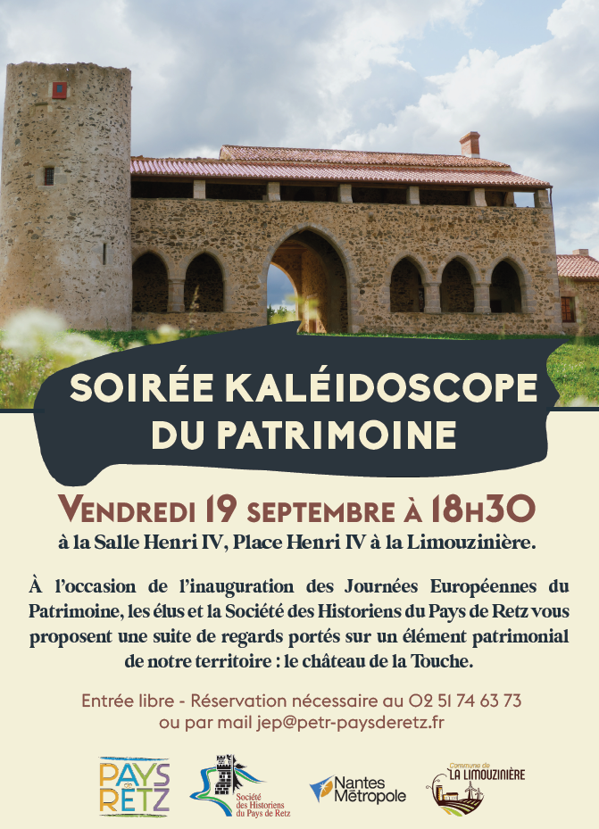 Le vendredi 19 septembre à 18h30, le château de la Touche à La Limouzinière accueillera la traditionnelle soirée Kaléidoscope du patrimoine, qui marque chaque année le lancement des Journées Européennes du Patrimoine en Pays de Retz.